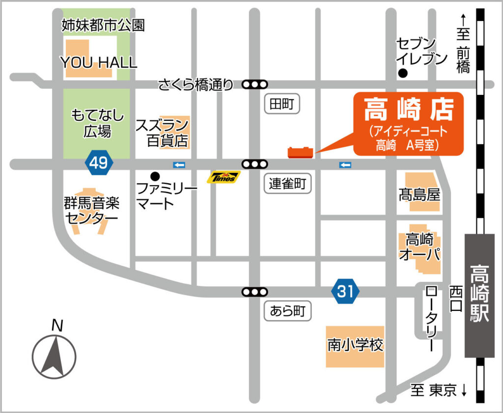 お客様に無理なく通っていただけるように、高崎駅徒歩7分の場所にお店を出店しました!お客様が来店する事に少しでもストレスを感じずに来てもらえるように「近くて便利」な立地となります。